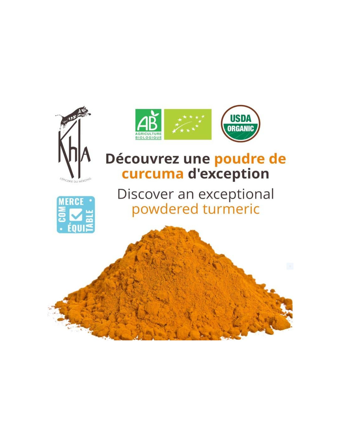Le curcuma en poudre bio, surnommé « Safran des Indes », est une épice de qualité supérieure, connue pour sa couleur orange intense, ses saveurs exotiques et ses bienfaits santé (anti-oxydant et anti-inflammatoire).