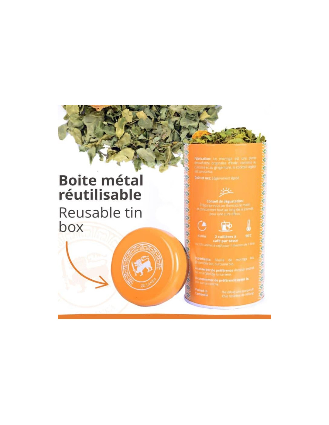 Bonne présentation, infusion á Consommer tout au long de la journée , possibilité d’acheter par la suite le produit en vrac afin de réutiliser la boite