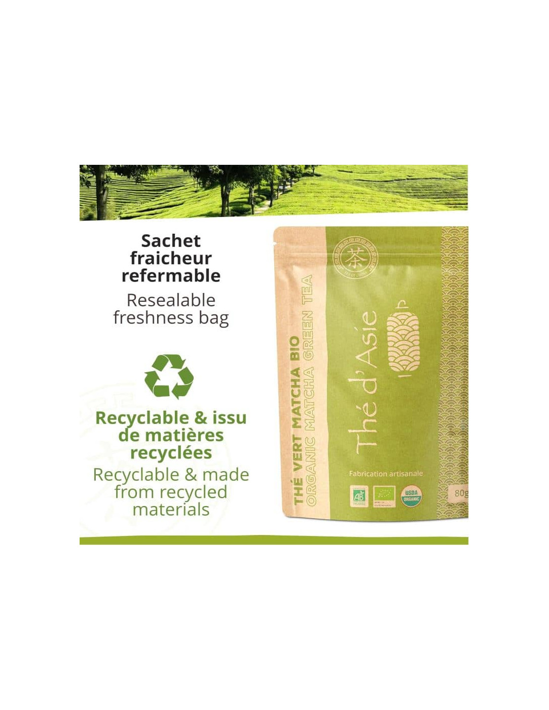Le thé matcha : une boisson aux mille vertus appréciée par les japonais depuis des millénaires dans un sachet éco-responsable de 80grs.