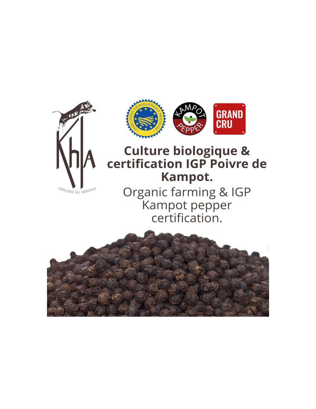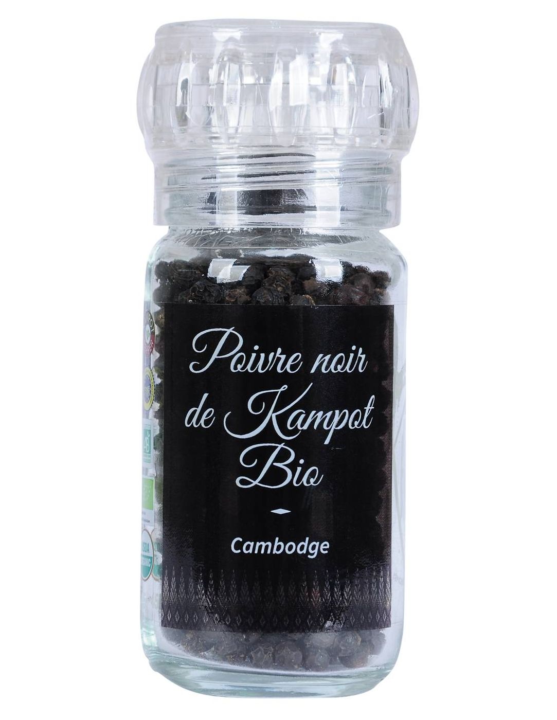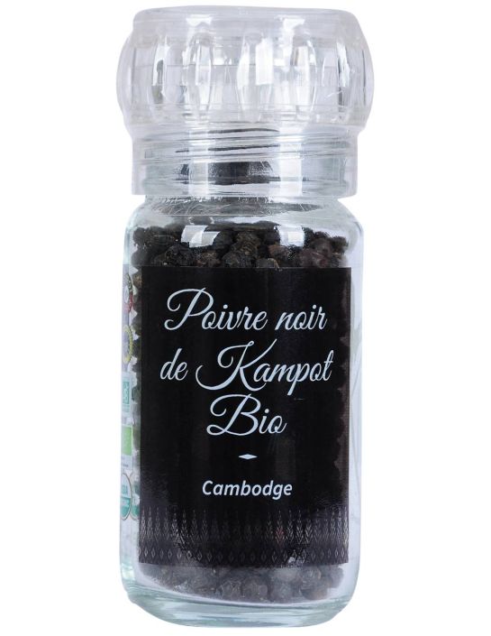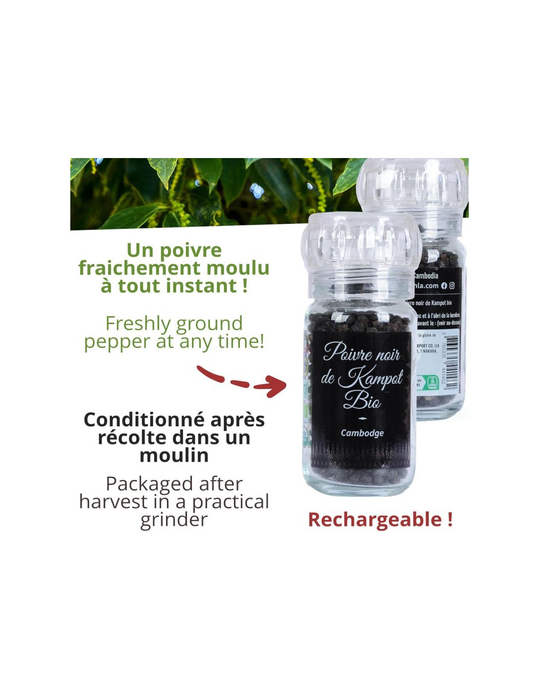 Poivre noir de Kampot - IGP - Biologique - Premium - en grains - 45g - Moulin